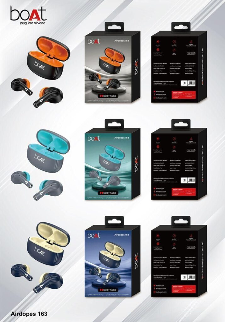boat Airdopes 163 True Wireless Earbuds with Dolby Audio, available in multiple colors
