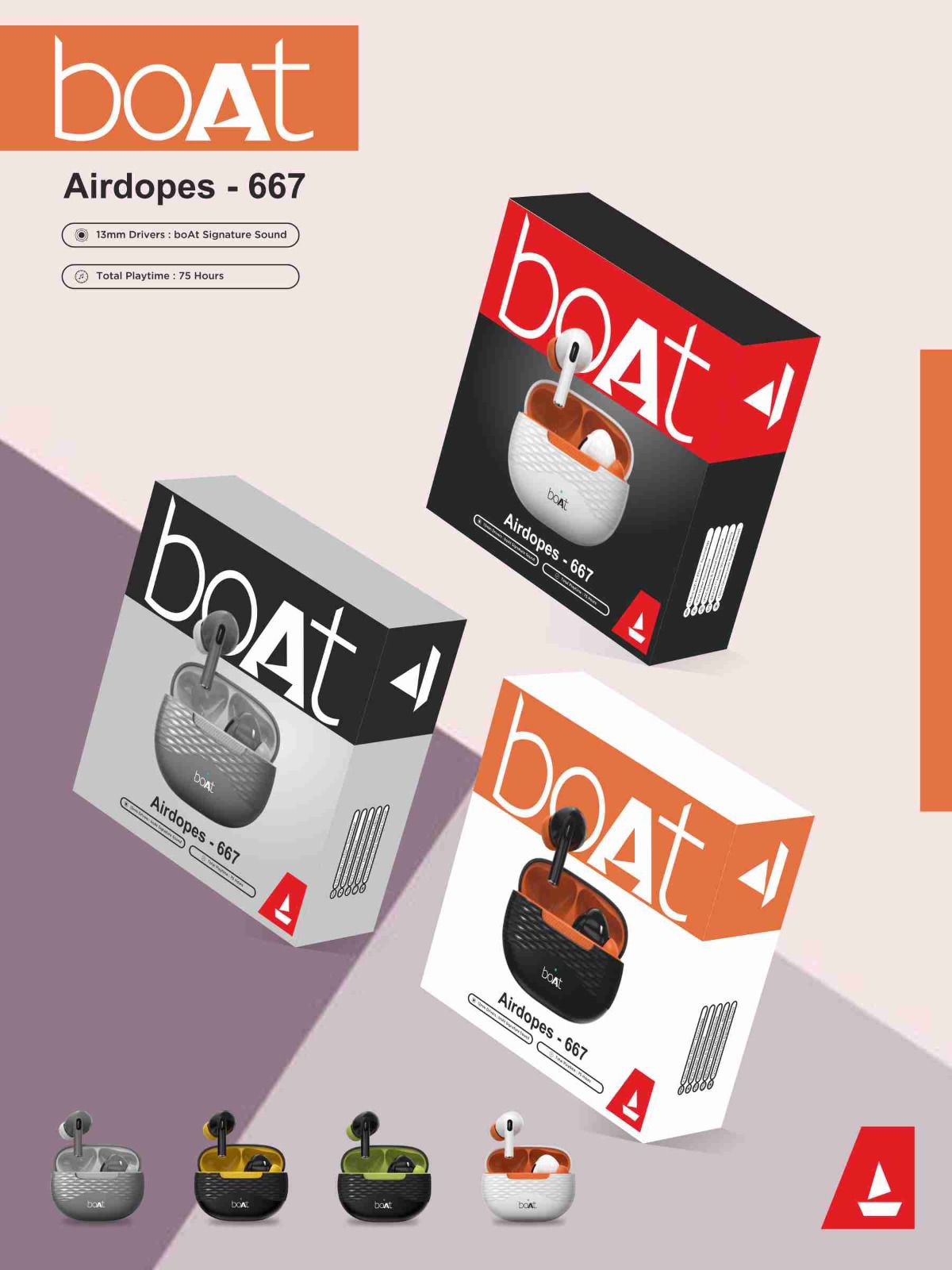 boAt Airdopes 667 TWS Earbuds – 75 Hours Total Playtime, 13mm Drivers with boAt Signature Sound