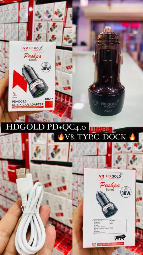 HD Gold Pushpa Series HD-17 30W PD+QC4.0 Quick Car Charger