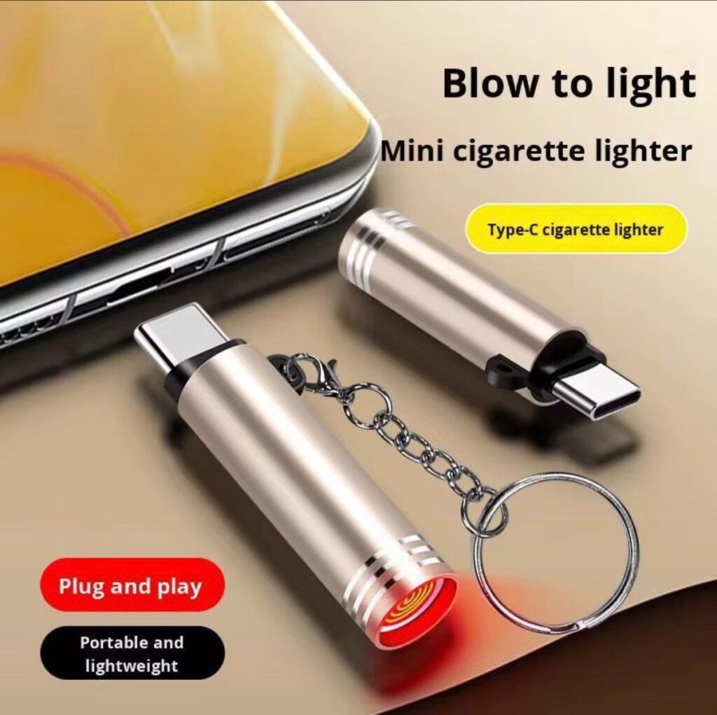 Portable USB Type-C Mini Cigarette Lighter – Blow-to-Light, Plug-and-Play Keychain Lighter