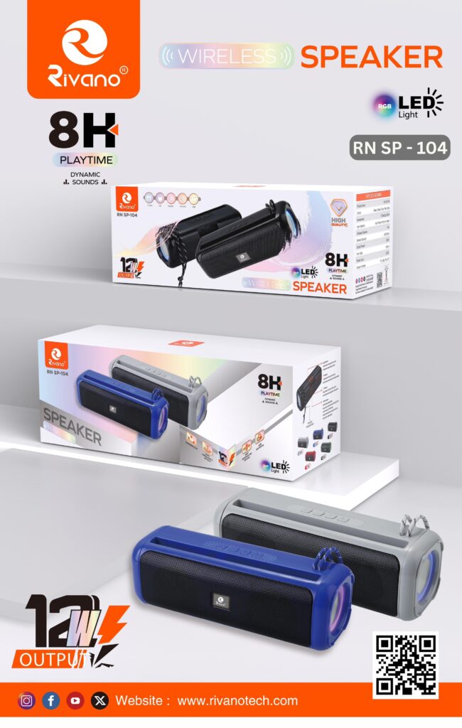 Rivana RN SP-104 Wireless Speaker – 12W Output, 8H Playtime, RGB LED Light & Dynamic Sound