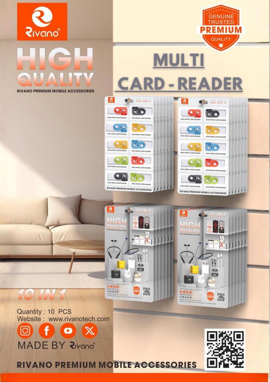 Rivano 10-in-1 High-Speed Multi Card Reader – Assorted Colors, Universal Compatibility