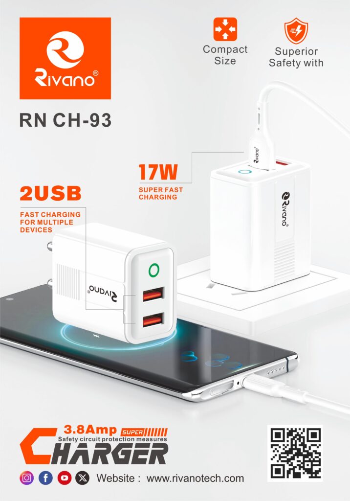 Rivano CH-26A Type C15W Fast Charger with Cable